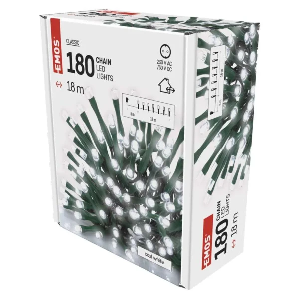 Emos D4AC04 LED karácsonyi fényfüzér, 18 m, kültéri és beltéri, hideg fehér, időzítő