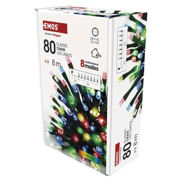 Emos D4AM22 LED karácsonyi fényfüzér, 8 m, kültéri és beltéri, többszínű, progr, időz.