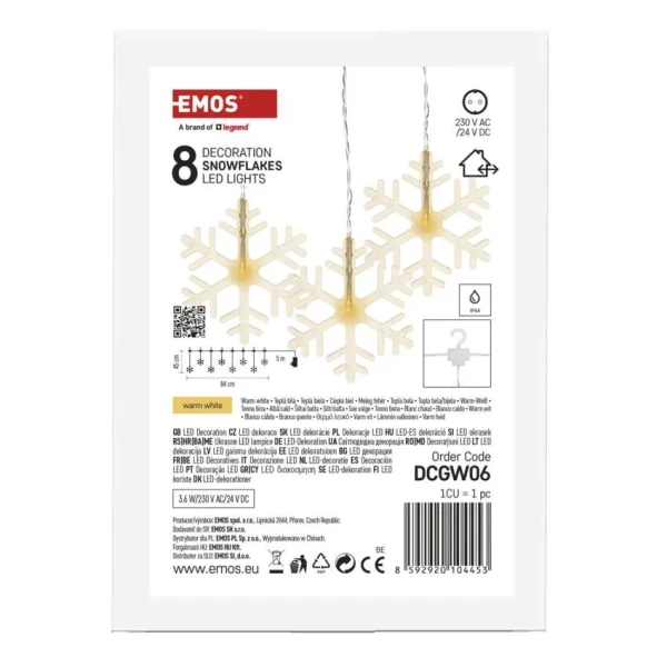 Emos DCGW06 LED karácsonyi fényfüggöny – hópelyhek, 84 cm, kültéri és beltéri, meleg fehér