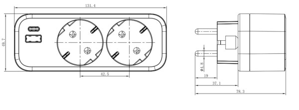 - 2 dugaljzattal, USB-A és USB-C töltőaljzattal