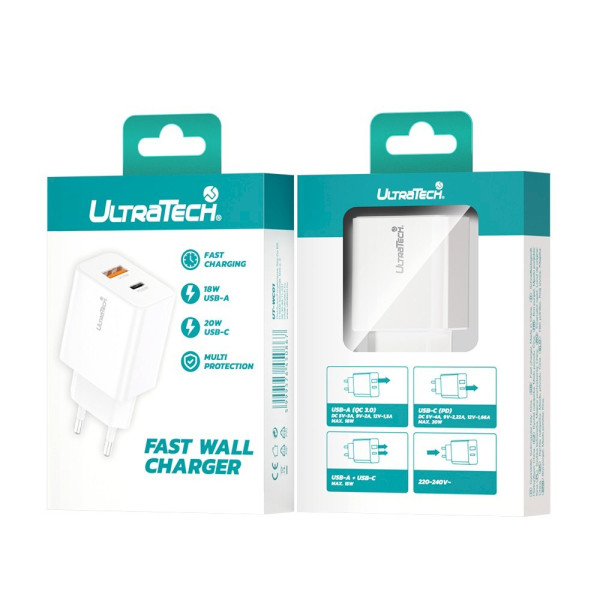 UltraTech WC01 hálózati töltő USB-A+USB-C