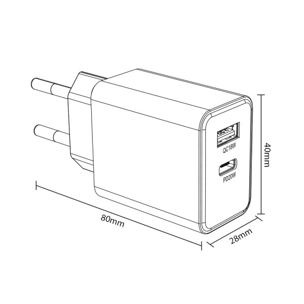 - USB-A és USB-C kimenetű hálózati gyorstöltő
